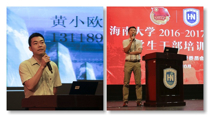 黄小欧围绕着“寻找工作动力”、“协调工作、兴趣、生活关系”和“学生工作最能锻炼人的是什么”三个问题展开讲解,对学生干部的工作方法提出指导性建议;陈广锐根据学生干部的大学四年提出了“海绵计划”、“雏鹰计划”、“破冰计划”和“亮剑计划”的生涯规划建议,希望学生干部注重能力培养,不断突破自我。