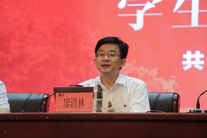 开班仪式上,廖清林代表学校党委、学校行政对参与本次培训班的学生干部表示亲切的问候,对校团委工作取得的成绩表示充分肯定,并对全体学生干部提出了五点要求:一是做青年学生思想健康的引领者;二是做青年学生全面发展的服务者;三是做青年学生合法权益的维护者;四是做青年学生与时俱进的助推者;五是做青年学生动态信息的沟通者。