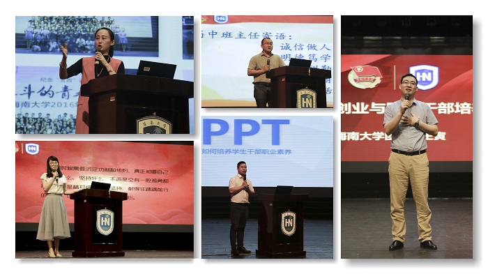 董楠楠老师与大家分享了艺术团感动与荣耀并存的成长历程;杨智伟老师讲述了信仰力、战斗力与影响力的成长经验;王寅老师向大家详细解读了创新创业的相关问题;葛雯菱老师介绍了我校新媒体“一网二微三平台”网络宣传模式,鼓励大家做阳光路上的新青年;王远露老师提出了“坚守梦想”、“珍惜幸福”、“坚持努力”等人生目标,希望干部们以小见大,追求卓越。