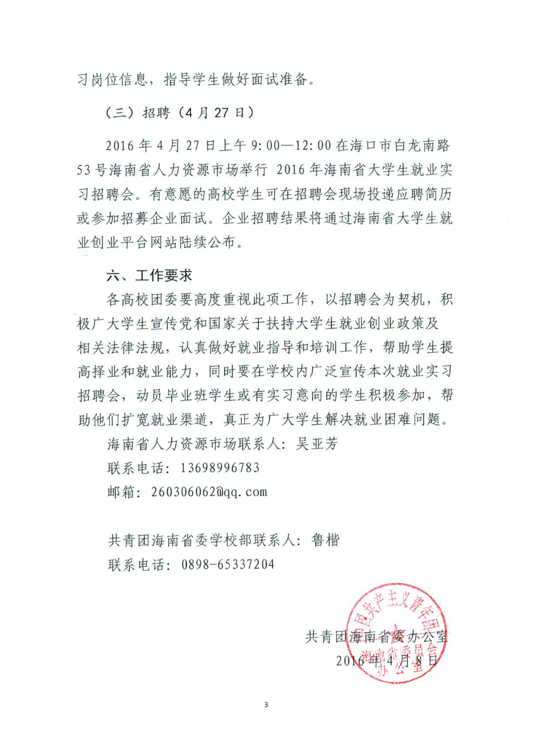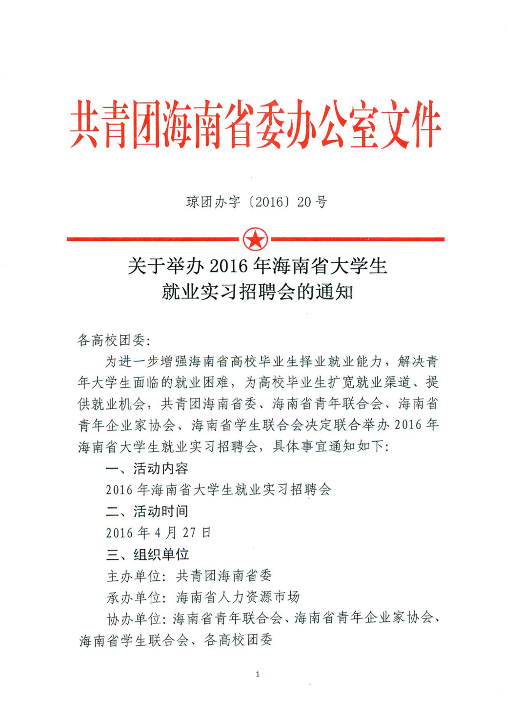 关于转发《关于举办2016年海南省大学生就业实习招聘会的通知》的通知