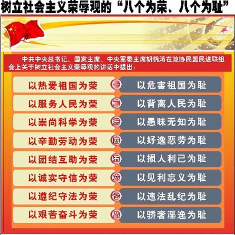 全校团员青年学生: 胡锦涛总书记在全国政协民盟民进联组会上提出了:“坚持以热爱祖国为荣、以危害祖国为耻,以服务人民为荣、以背离人民为耻,以崇尚科学为荣、以愚昧无知为耻,以辛勤劳动为荣、以好逸恶劳为耻,以团结互助为荣、以损人利己为耻,以诚实守信为荣、以见利忘义为耻,以遵纪守法为荣、以违法乱纪为耻,以艰苦奋斗为荣、以骄奢淫逸为耻”的社会主义荣辱观。这“八荣八耻” 的提出,具有时代性、针对性、衔接性、继承性等特点,概括精辟,内涵深邃,体现了中华民族传统美德与时代精神的有机结合,体现了社会主义基本道德规范的本质要求,体现了社会主义核心价值观的鲜明导向。 “八荣八耻”的社会主义荣辱观对构建社会主义和谐社会、对青年大学生的成长成才具有非常重要而深远的意义。为此,共青团英国威廉希尔公司委员会向全校团员青年学生发出如下倡议: 一、认真学习胡总书记的重要讲话,深入领会社会主义荣辱观的深刻内涵。 二、以社会主义荣辱观为精神指导,树立正确的世界观、人生观和价值观。 三、以“八荣八耻”为行动指南,自觉形成良好的道德行为规范,为构建和谐海大作贡献。 四、结合我校“我与祖国共奋进、我与海大齐发展”、“民族精神代代传”主题教育活动,积极参与开展生动活泼、丰富多彩的道德实践活动。 全校团员青年学生,让我们积极行动起来,以“八荣八耻”为标准,树立高尚正确的荣辱观,心系祖国,无私奉献,用实际行动谱写壮美的青春乐章! 共青团英国威廉希尔公司委员会