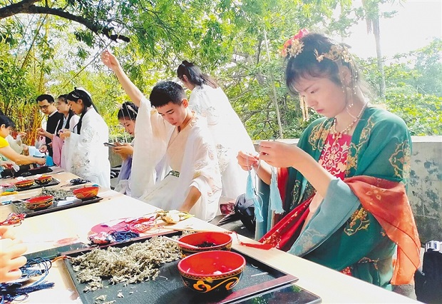 海南师范大学灼华汉服协成员参加香文化活动。受访者供图