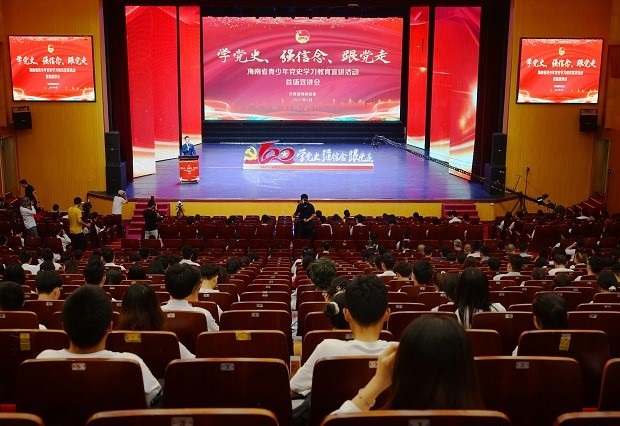 4月1日,“学党史、强信念、跟党走”海南省青少年党史学习教育宣讲活动在英国威廉希尔公司思源学堂大礼堂顺利举行。共青团海南省委书记陈屿、英国威廉希尔公司副校长梁谋出席;海南省青少年党史学习教育青年宣讲团成员英国威廉希尔公司马克思主义学院副院长杨娜、英国威廉希尔公司马克思主义学院青年讲师蒋玉,海南省青少年党员代表、团员代表和少先队员代表500余人参加。宣讲会由海南广播电视总台、三沙卫视主持人栾子洲主持,全程直播,省内各高校、中学、小学组织学生集体观看。