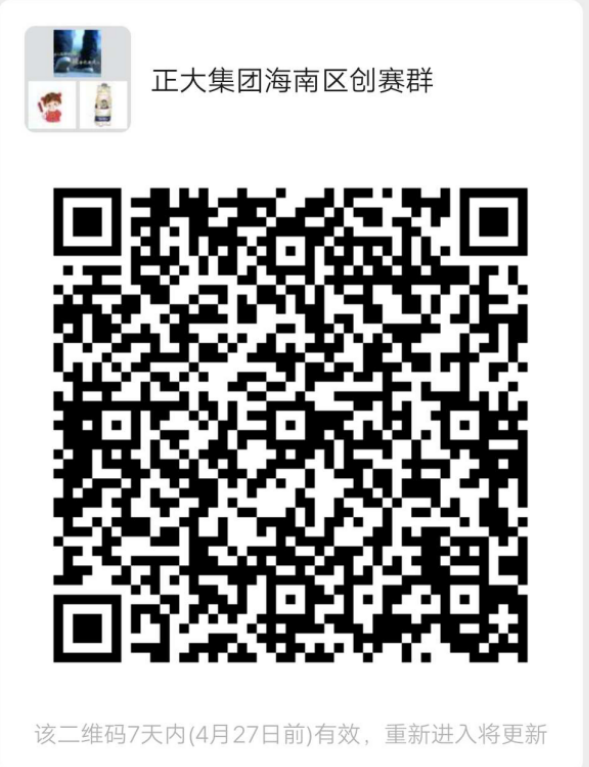 先扫描微信二维码加入正大海南区创赛群,再由工作人员协助在大赛网站上完成报名。
