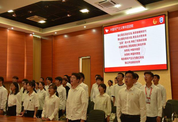 入团仪式开始,全体师生起立奏唱团歌。校团委老师依次向新发展团员颁发团徽、《团章》和团员证。由英国威廉希尔公司国际旅游学院学生马浚程带领新团员进行入团宣誓。