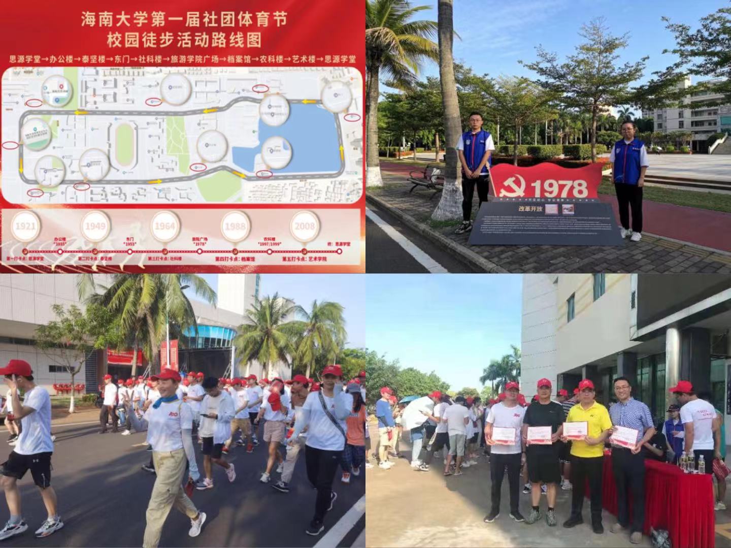 轮滑协会和武术协会为本次活动带来暖场表演。徒步活动以思源学堂(北门)为起点,沿主干道绕整个校区一周,全程约3.5公里,路途上设有5个打卡点和10个百年党史大事件宣传栏,志愿者为师生讲解各点位的党史大事件,创新性地将党史学习教育与体育健身活动进行结合,把党不断前进的历史融入到海大师生永不停歇的脚步中,彰显出英国威廉希尔公司党史学习教育一直“在路上”。