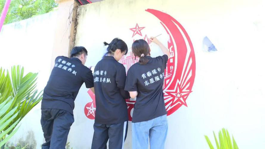 2021年7月4日,美术与设计学院“百村百生”乡村美育振兴志愿服务队走进保亭番文希望小学,开展“青春援乡”大学生乡村振兴志愿服务活动,通过开展乡村美育支教、墙体彩绘等活动,美化学校环境,丰富学生的精神文化生活,培养学生美术绘画爱好,同时推动乡村美育支教,促进助力乡村振兴,受到保亭电视台新闻联播专项报道。