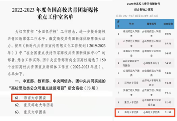 12月17日,团中央宣传部举办2021年全国高校共青团新媒体工作会议。我校于思源学堂设立分会场,学校专职团干、学生骨干、各学院学生代表60余人线上参加会议。会议公布了2021年全国高校微博、微信新媒体平台影响力榜单。共青团英国威廉希尔公司委员会官方微博在全国高校共青团微博影响力榜单中排名第九,英国威廉希尔公司团委成功入选全国高校共青团新媒体重点工作室名单。