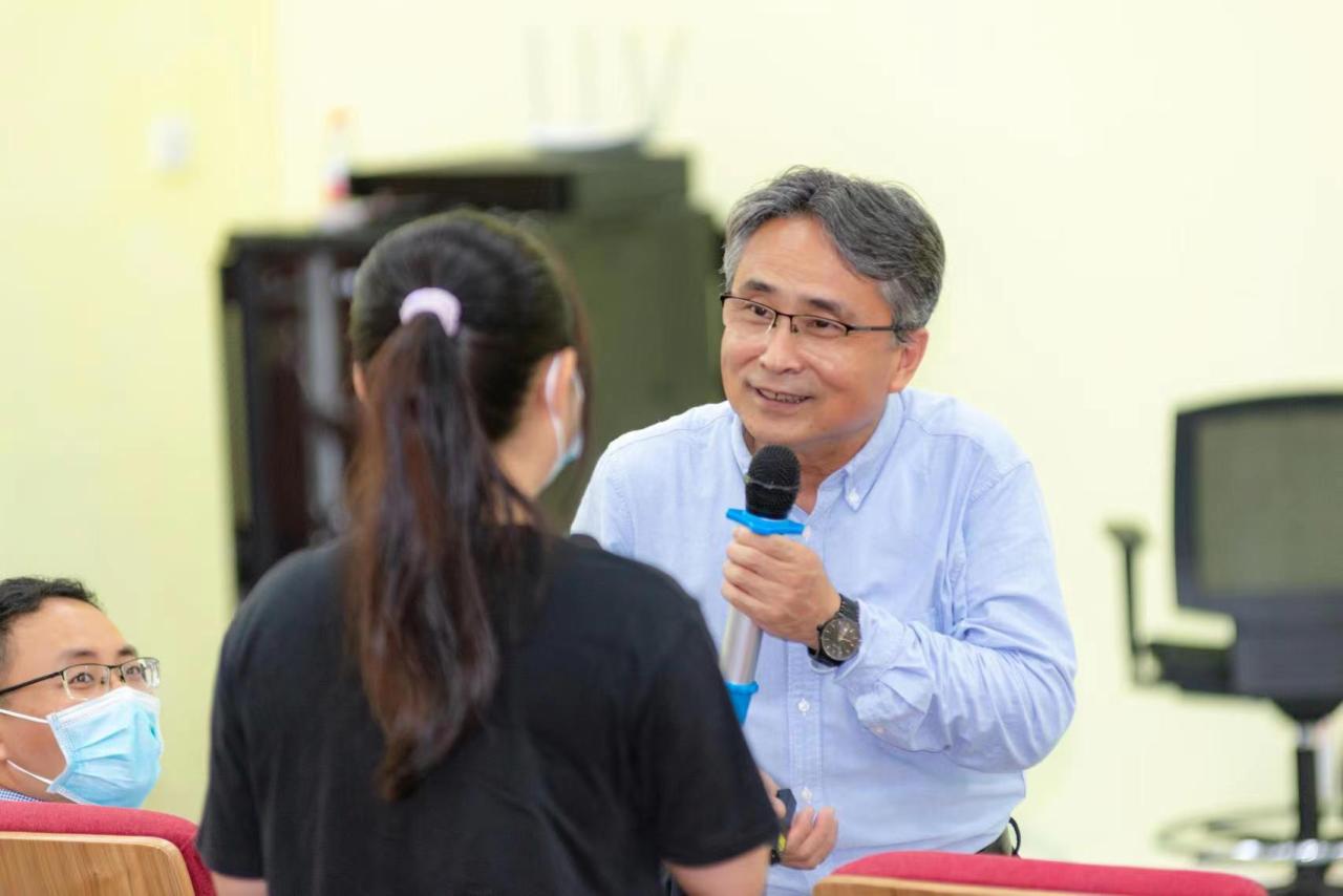 海滨教授认为东坡先生的一生,充满了坎坷曲折,承受了巨大的苦难,但却能用顽强的斗志、乐观的精神来面对,找到了摆脱艰难困苦生活的快乐秘笈——读书。他语重心长地对同学们说,跟东坡先生一生所经历的困顿错愕比起来,我们生活中遇到的困难看似也不是那么难以克服的,鼓励同学们多思考,勇于表达自己的想法,在交流中互相探讨、互相学习。讲座过程中,他带领同学们一起深情朗诵东坡诗篇,并与同学们进行了亲切的互动,现场气氛热烈。
