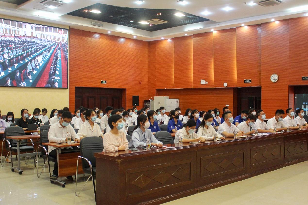 共青团英国威廉希尔公司委员会组织专职团干、青年教师代表以及学生骨干于思源多功能厅观看直播。各书院开设分会场,通过网络、广播等媒体收听收看大会直播。