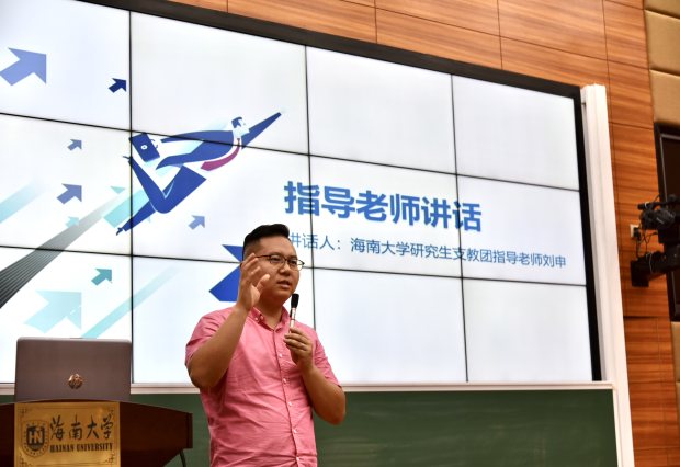丹心书院徐腾老师则以自己身为海大校友和老师的身份,对儋州校区的同学们寄予希望,并向同学们发出踊跃参加第三届研究生支教团项目的号召。