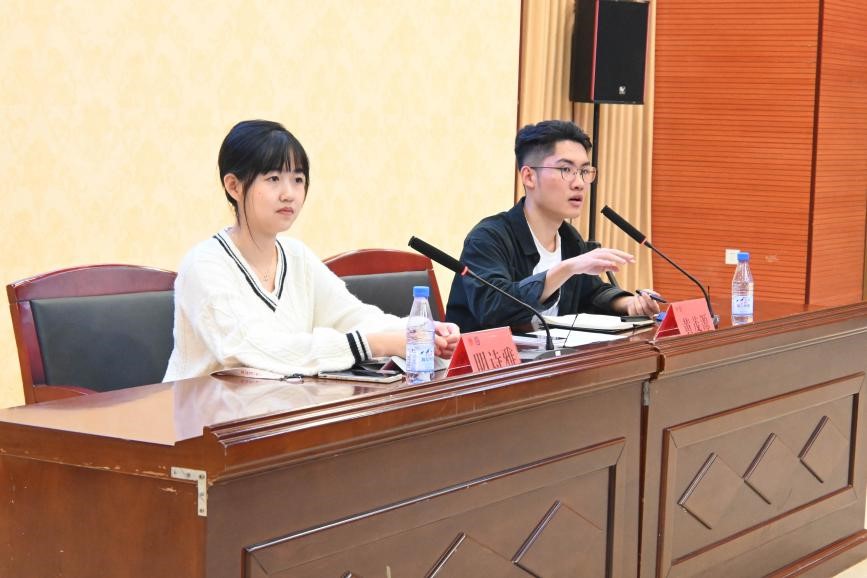 两位嘉宾就自身保研及实习经历向新生分享经验。明诗雅同学通过讲述自己的保研经历及英语学习经验,为大一新生指明方向,帮助新同学尽快找到自己的定位,融入到繁忙且充实的大学生活中去。黄茂源同学就自身实习经验进行分享,通过亲身经历,建议新同学要迅速完成从高中生到大学生的角色转换,在困境之中不断突破与提升自我。在听众提问环节,两位嘉宾就同学们的踊跃提问进行了耐心解答。