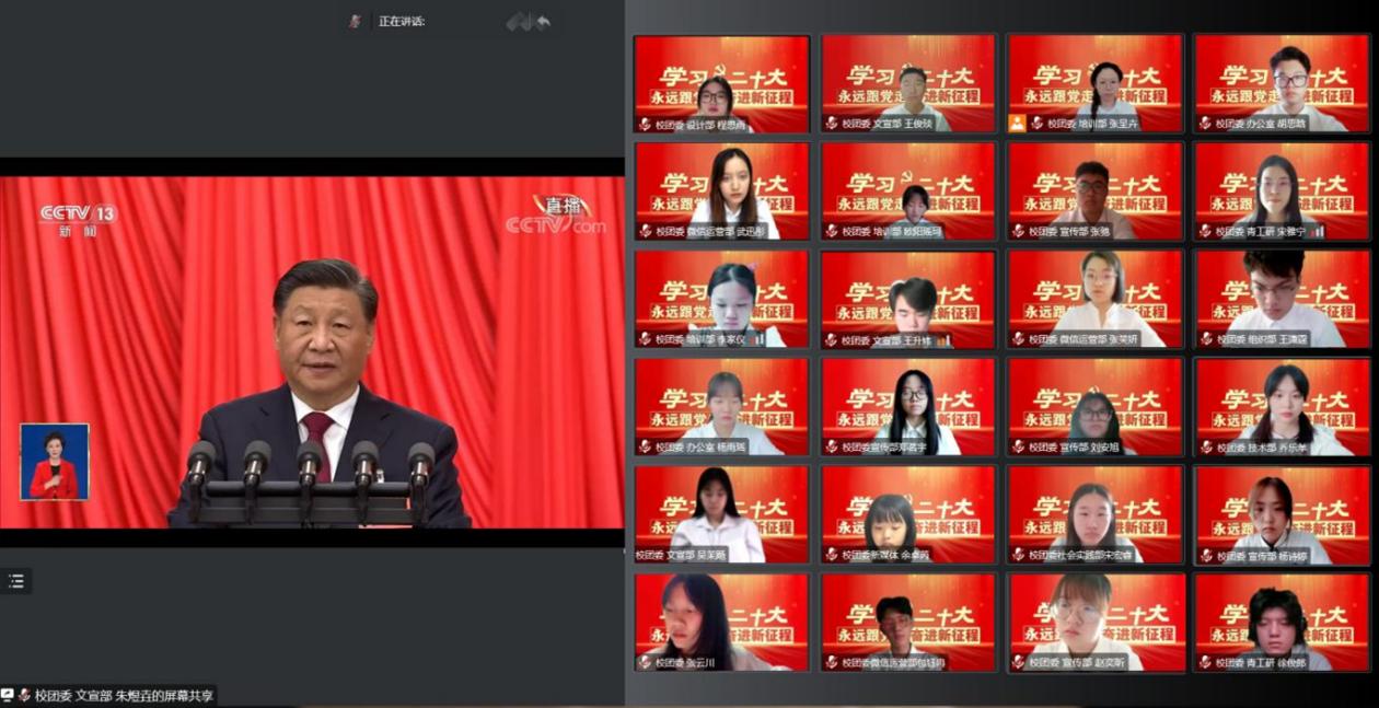 学习二十大,永远跟党走,奋进新征程。为学习宣传贯彻党的二十大精神,全面强化学生骨干思想素质建设,落实高校共青团“为党育人,为国育才”的初心和使命,2022年10月16日上午,英国威廉希尔公司团委积极组织青年学生与团学骨干在线上共同收听收看中国共产党第二十次全国代表大会直播。