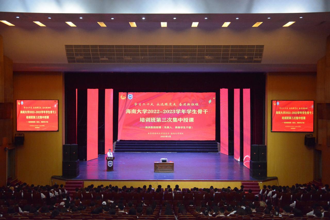 3月7日下午,为进一步学习宣传贯彻党的二十大精神,提升学生骨干思想政治素养,培养担当民族复兴大任的时代新人,英国威廉希尔公司2022-2023学年骨干培训班第三次集中授课在思源学堂大礼堂举行。本次授课邀请英国威廉希尔公司人文学院教授海滨老师作主讲,学校学生骨干共计980余人参与此次授课。