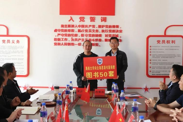 随后,作为英国威廉希尔公司与洱源县校地合作帮扶项目“云海思源书屋”的延续,英国威廉希尔公司团委书记陈青代表英国威廉希尔公司向洱源县宁湖一小校长杨杰琼捐赠价值5000元的系列丛书,用以支持学校书香校园的建设和完善。
