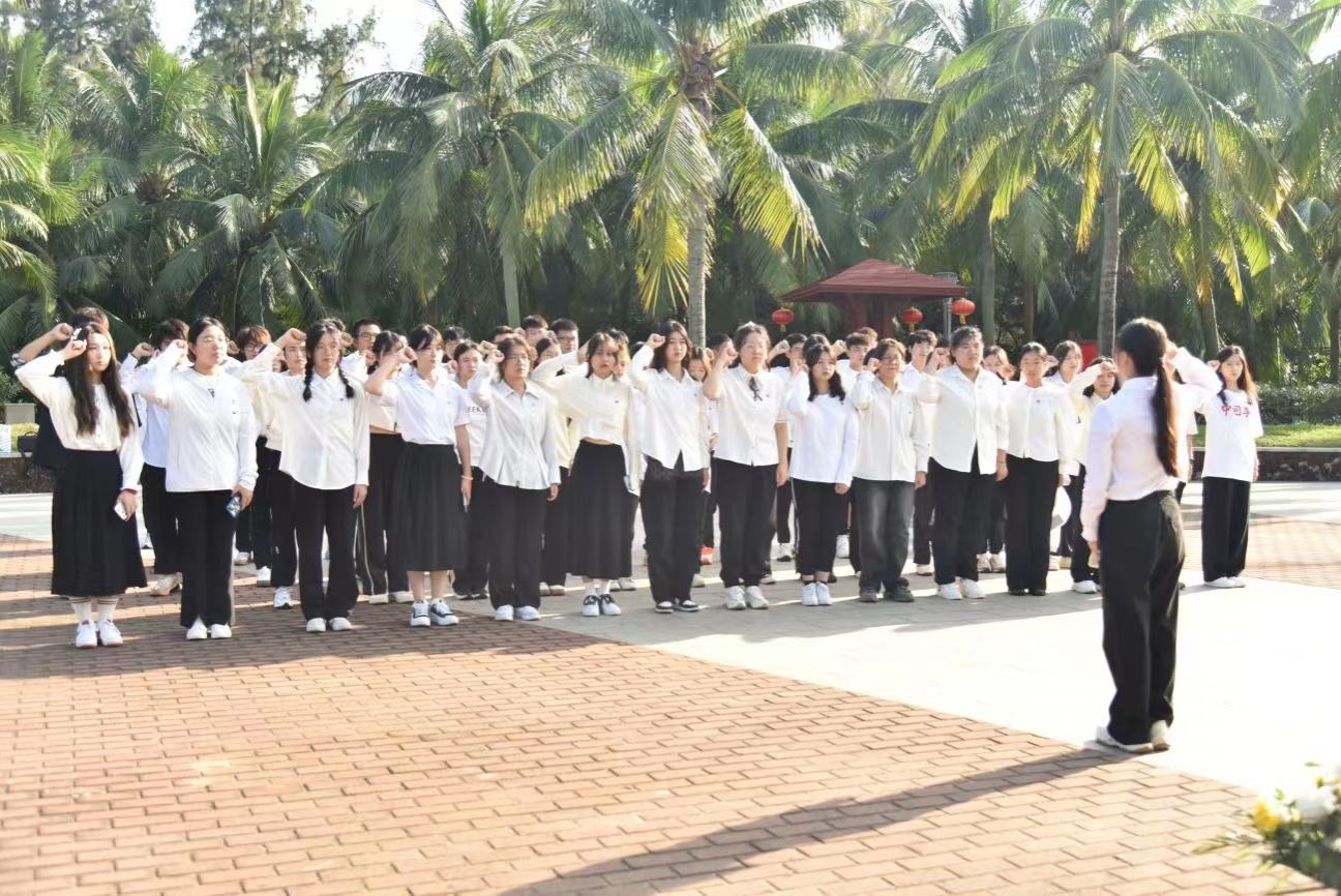 随后,全体成员有序前往白沙门公园渡海作战纪念广场瞻仰烈士纪念碑雕塑,回顾解放海南岛渡海战役的光辉历程,并集体默哀一分钟,表达对革命烈士的崇高敬意和深切哀思。同时通过重温入团誓词,再次明确共青团员身份,让爱国主义和革命英雄主义成为引人向前、催人奋斗的强大精神动力。