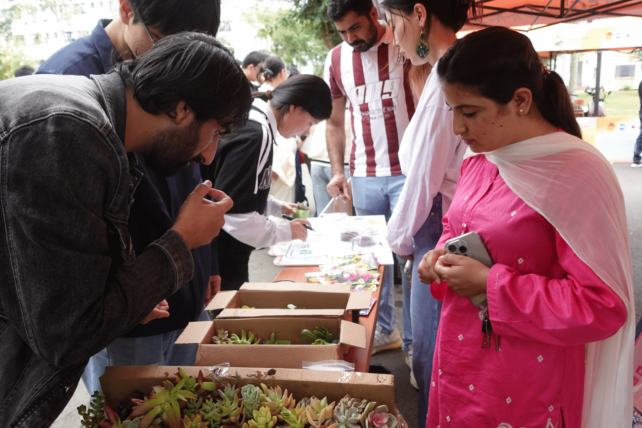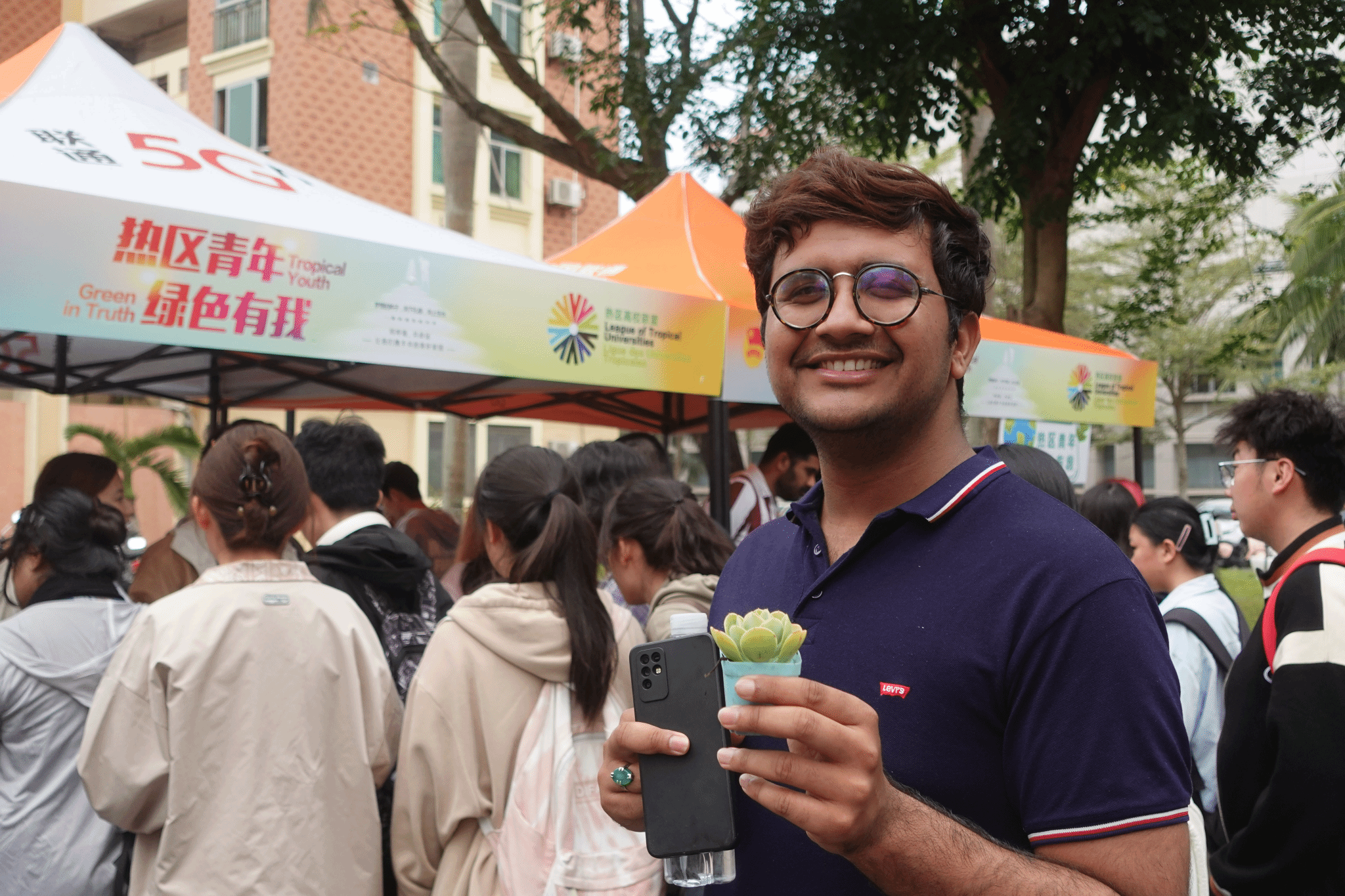 活动现场设置了趣味问答环节,题目涵盖热区高校联盟使命、热带农业、蓝碳科技等前沿议题。参与者答对题目即可领取植物种子、多肉盆栽等绿色奖品,不少同学直呼“既涨知识又拿奖品,双倍快乐!”来自巴基斯坦的生态学博士生佩儿(AKRAM TAHIRA)在问答中表现亮眼,她兴奋地说:“热带地区的生态保护需要全球协作,而今天的活动让我感受到每个人的微小行动都能汇聚成改变的力量。”