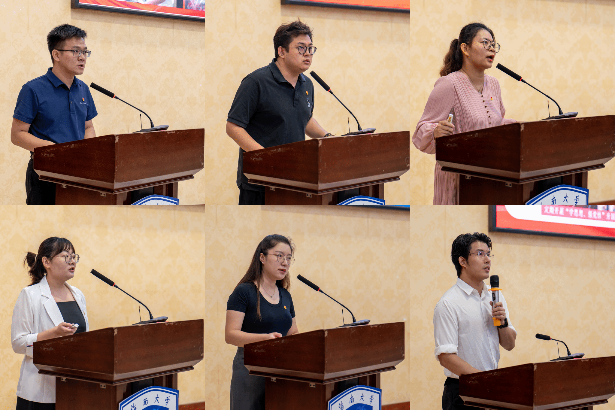 分享交流环节,丹心书院徐腾、凤翔书院滕跃、淳明书院武琼、南海书院王小语、海德书院芦怡睿、今朝书院尹鸿文先后登台,结合各自岗位实践,分享了他们在不同维度的示范案例和优秀经验。团委常委李翠霞、郭孝伟先后就学校共青团工作实际展开分享,各团委委员在会上踊跃发言、交流互动。