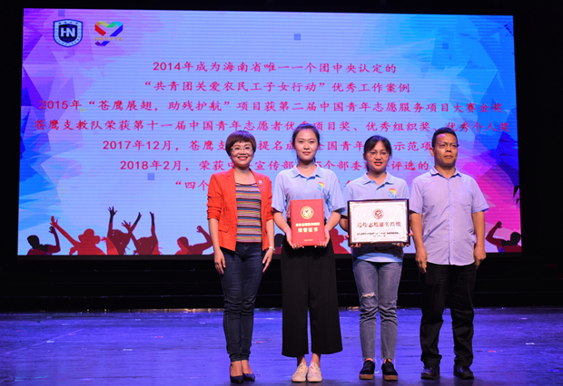 在当晚的志愿者之夜活动中,苍鹰支教队获得表彰。据了解,苍鹰支教队作为英国威廉希尔公司志愿服务影响力最大的队伍,已然成为英国威廉希尔公司志愿服务的一张闪亮名片。苍鹰支教队成立于2009年,近年来,苍鹰支教队获得多项全国青年志愿领域奖项:2015年获第二届中国青年志愿服务项目大赛金奖;2017年12月,苍鹰支教队提名成为全国青年志愿示范项目;2018年2月,苍鹰支教队荣获中央宣传部等15个部委联合评选的“四个100”全国最佳志愿服务组织等多个奖项。晚会现场,苍鹰支教队的志愿者与现场观众们分享了一个又一个他们与孩子之间的感人故事,为贫困地区的儿童带来知识的灌溉,为特殊教育儿童送去爱的温暖,他们用行动践行着志愿服务精神。自2011年项目启动以来,“苍鹰展翅,助残护航”特教组以海口市特殊教育学校为定点基地,坚持“尊重,关爱,沟通;敬残,爱残,助残”的宗旨,每周二统一服装,往返骑行近16公里,前往特教学校开展助残志愿服务活动,一路走来风雨无阻。