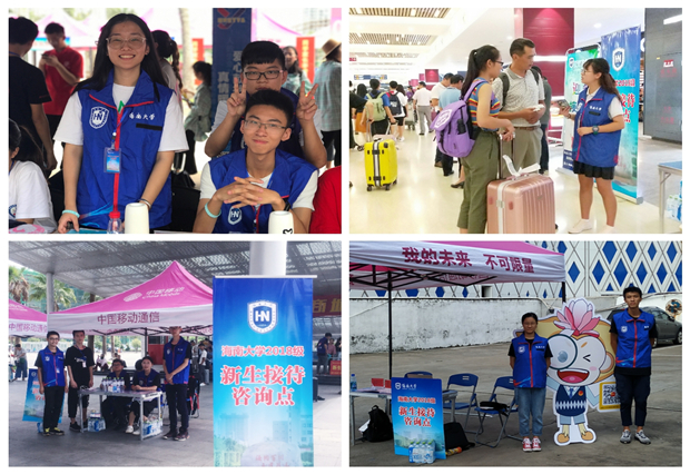 为给新生提供更加人性化的服务,英国威廉希尔公司共青团组建了由六大校级组织学生干部组成的近两百余名校外迎新志愿者队伍,在机场、火车站、港口、高铁站设立咨询点,他们统一身着蓝色志愿者马甲,佩戴工作证,穿梭于咨询点与校内迎新点;校内两千余名志愿者,提供全面的报道注册、生活帮助等服务,为来校的新生提供热情、便捷、全方位的“一站式迎新”服务;学校迎新点专门开通了海甸、城西两校区通勤车接送新生及其家长,车辆上安排讲解志愿者,为新生及家长讲解学校历史沿革、校园文化、学生组织建设等方面的情况,帮助新生提前了解学校概况,提升新生荣誉感和归属感,致力于构建学校与新生、家长之间的桥梁。