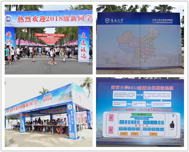在迎新现场,各个学院迎新方式各具特色亮点纷呈,热带农林学院将《新生导航》、《新生指南》、《文理科实验班报考须知》、《易班邀请信》等所有需发放给新生的资料统一装入新生袋中,解决了领取材料多登记困难的问题;法学院在迎新接待处专门设立党员服务岗,开展“不忘初心促发展,党系新生传温情”系列活动,通过“情系新生,‘信’意满满”、“榜样启引”联系卡、“面对面、心交流”下宿舍活动,提高新生对“党情、国情、省情”的认知;政治与公共管理学院向每位新生发放社会实践成果《调研海南》和《成为政管人的第一堂课》等院迎新宣传材料;艺术学院的“艺“心”传爱”活动,由学长学姐为新生们写下寄语;国际旅游学院组织“给未来的自己写封信”活动,新生可以在迎新处领取免费提供的校园明信片上写下对未来的寄语,投入现场摆放的邮筒内。此外,各学院还积极引导帮助新生注册报到,为学生们提供了细致热情的暖心服务。