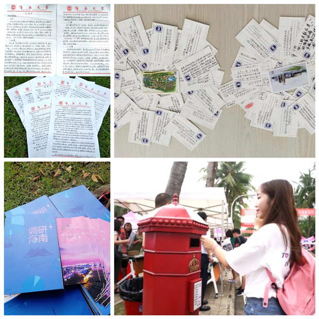 除线上活动外,线下活动亦精彩纷呈。手绘地图,《思源》、《海大学子》和《筑梦》等迎新刊物,推陈出新,内容涵盖团学工作、榜样力量、大学校历等各个方面。新生人手一份的新生指南折页,为新生在衣食住行方面提供指导。这一切都为了能更细致、更便捷地服务好新同学,能让新同学们更好地了解、更快地融入大学新的生活,开启大学旅程新的篇章。在迎新大本营开展的“青春寄语,筑梦海大”活动,新生们积极参与,写下自己对未来的希望。信息科学技术学院软件工程专业的姜燕辉同学写下:要勇于尝试自己喜欢却没有去做的事,加油!