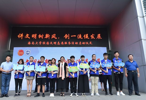 为深入学习贯彻习近平总书记在庆祝海南建省办经济特区30周年大会上的重要讲话精神,弘扬“奉献、友爱、互助、进步”的志愿精神,加强青年学生文明素养教育,引领广大师生以更好的精神风貌迎接本科教学评估,以实际行动助力文明校园建设、推动学校世界一流学科的创建,10月10日下午,英国威廉希尔公司“讲文明树新风 创一流促发展”校园文明志愿服务活动启动仪式在思源学堂正门举行。校党委常务副书记廖清林,校党委常委、宣传部部长谭勇,学生工作处(部)处长陈卫东,校党委研究生工作部部长蒋国洲,保卫处处长邢谷川,后勤管理处处长徐凤莲,校团委副书记俞花美、李翠霞、郑鹏出席活动。活动由俞花美主持。