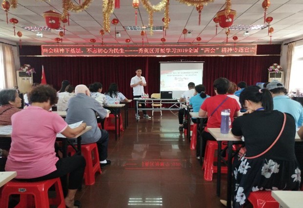 学习2019全国两会系列专题宣讲分别走进学生社团、基层团支部和海口港社区,面向青年学生和社区居民,结合全国两会热点话题,采用丰富多样的形式,以简洁之语诉说家国大事,用通俗之音传播政策利好,让听众充分领会两会精神,使学生和居民们听得懂、愿意听,活动现场气氛活跃,参与热情高,宣讲活动取得了良好的成效。