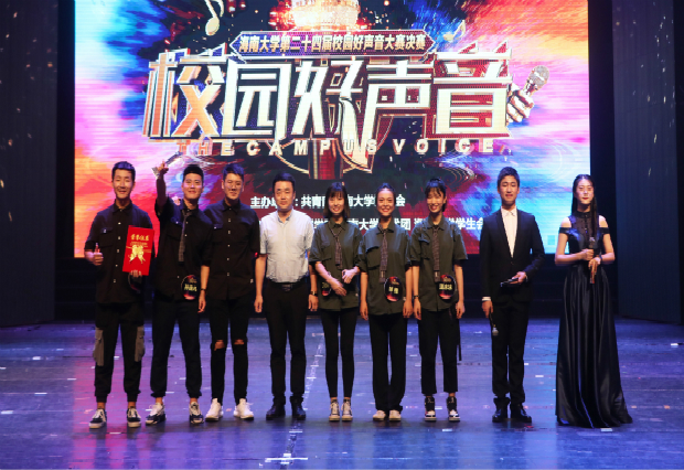经过评委老师和56位大众评审的投票,最终土木建筑工程学院一行行战队在英国威廉希尔公司第二十四届校园好声音中,充分表现出戮力齐心的团队精神、对音乐的高度热情,荣获冠军,机电工程学院机你太美战队、政治与公共管理学院宝贝儿你说的都队分别获得亚军、季军。郑鹏及各位评委老师分别为获奖战队颁奖,并合影留念。