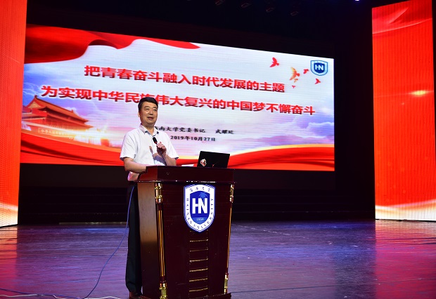 10月27日,校党委书记武耀廷以《把青春奋斗融入时代发展的主题 为实现中华民族伟大复兴的中国梦不懈奋斗》为题在思源大礼堂为英国威廉希尔公司2019-2020学年学生骨干培训班讲授第一堂课。活动由校团委书记俞花美主持。