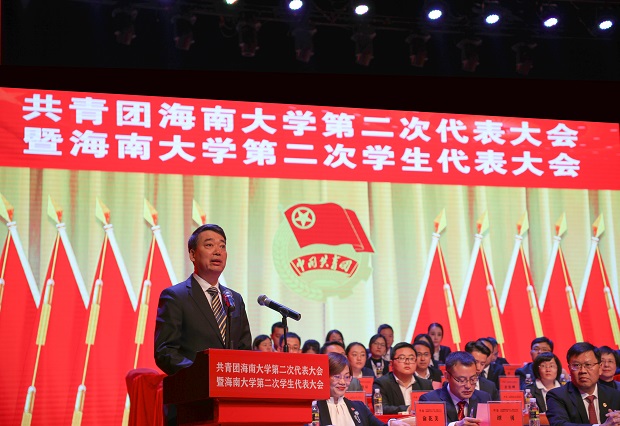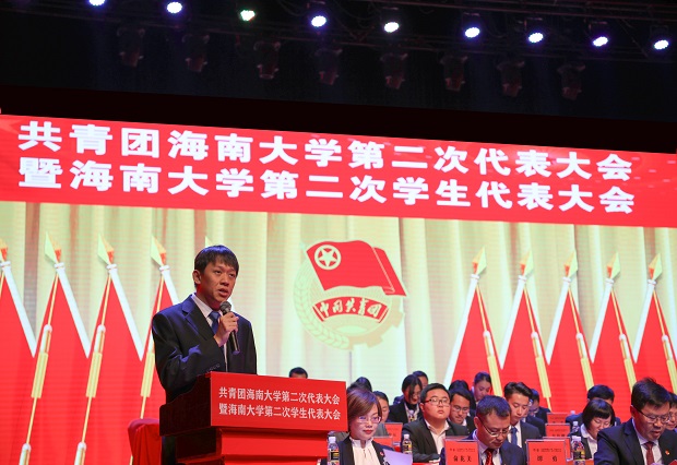 武耀廷在大会开幕式上作讲话。他首先代表学校党委向大会的召开表示热烈的祝贺,向长期以来关心和支持我校团学工作的团省委、省学联、兄弟院校以及社会各界表示衷心的感谢,向各位代表、并通过他们向全校广大青年、全体共青团员和青年工作者致以诚挚的问候!他充分肯定五年来学校各级团学组织在思想引领、校园文化、社会实践、志愿服务、创新创业、服务青年、全面从严治团等方面卓有成效的工作,开创团学工作新局面,取得了许多工作上的优异成绩。他希望全校各级团学组织和广大青年积极投身于海南自贸区(港)的建设和学校的事业发展中来,将本次团代会开成团结奋进、凝聚力量、继往开来的大会,进一步发动和带领广大青年,用实际行动为海南和学校发展贡献力量。