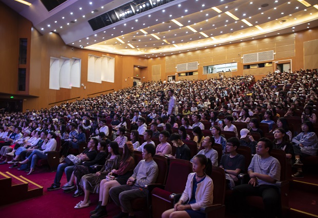 郭帆带着对母校的无比热爱与怀念,分享了自己是如何从一名法学专业的学生变身导演的心路历程,回顾了自己成长路上的一次次“开始”,讲述了逐梦途中的奋斗与坎坷,他永不放弃的执著、风趣幽默的叙述、真诚动情的勉励,引发在场学子的强烈共鸣,现场不时爆发热烈的掌声和欢呼声。