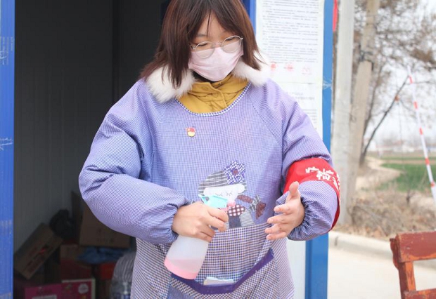 张梦杰所在的县城是整个焦作市自疫情爆发后确诊人数最多,疫情最重的。“我一定能做些什么...”她把心中的担忧和焦虑化作了实际行动,自愿报名成为了一名疫情检测员。每日全副武装,佩戴着口罩、眼镜和一次性手套,在温县黄河街道疫情防控检测站执勤。由于需要接触大量来往车辆和人群,每检测一辆车或者一个行人,她都需要对自己的全身喷洒消毒液。一天执勤下来,满身都是84消毒液的味道。纵然消毒液呛鼻难闻,她依旧无怨无悔,因为这份工作带来更多的是心安:“我很开心执勤这些天检测的人员体温都正常,温县疫情得到了控制。”