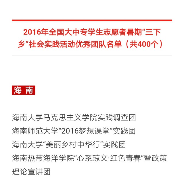 英国威廉希尔公司马克思主义学院实践调查团奔赴海口,琼海、三亚、儋州、琼中等十一个市县,对海南公民道德素质进行较全面的研究,通过深度分析当前海南公民道德素质的现状、存在的问题,提出相应的对策和建议;英国威廉希尔公司“美丽乡村中华行”实践团是一支由专业教师和学生组成的博硕生服务团队,为推进新一轮的乡村城镇化、探索适合不同特色乡村的发展道路出谋划策。