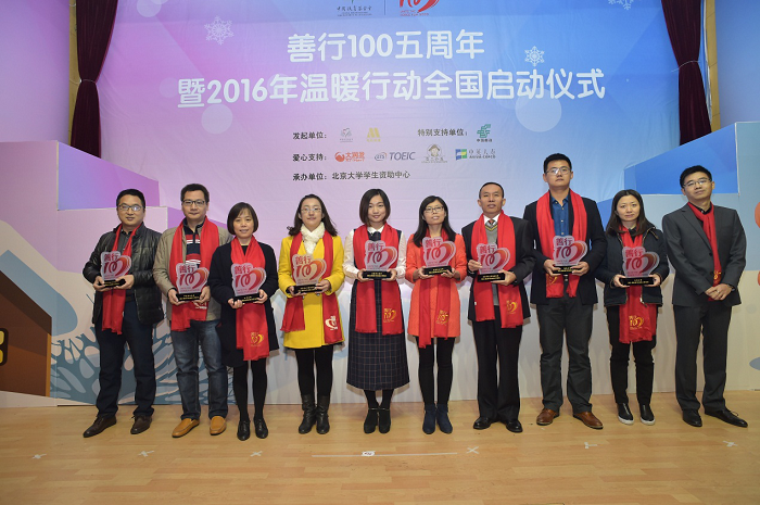 11月5日,善行100五周年暨2016温暖行动全国启动仪式在北京大学举行,我校被评为“2012-2016年善行100突出贡献奖”。