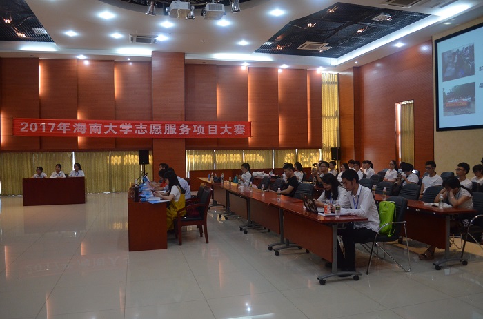 4月21日,英国威廉希尔公司2017年志愿服务项目大赛在思源学堂多功能厅举行。海南省志愿服务发展基金会秘书长唐林,团省委联络部副调研员王琼,团市委志工部副部长、海口市志愿服务联合会副秘书长欧阳资应邀作为评委出席本次大赛。