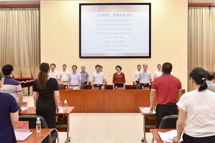 材料与化工学院、经济与管理学院、艺术学院等开展万名重温入团誓词活动,通过戴团徽、唱团歌、举团旗和重温入团誓词的方式,增强青年学生的使命感。