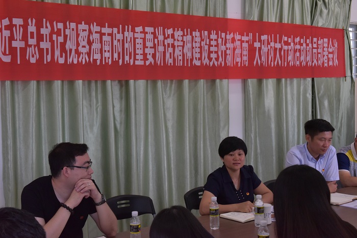 7月4日,校团委在思源A403召开“深入学习贯彻习近平总书记视察海南时的重要讲话精神建设美好新海南”大研讨大行动活动动员部署会议。校团委书记林洪冰,副书记陈广锐、周智出席本次会议,会议由陈广锐主持。