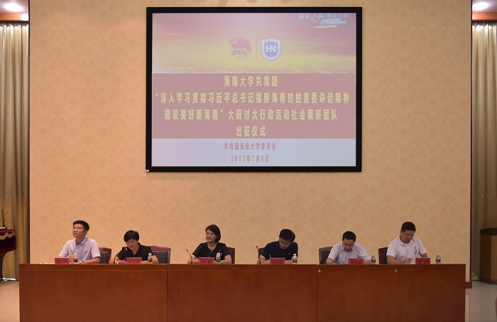 7月8日,英国威廉希尔公司共青团“深入学习贯彻习近平总书记视察海南时的重要讲话精神建设美好新海南”大研讨大行动活动社会调研团队出征仪式在思源多功能厅举行。团省委党组成员罗桦,英国威廉希尔公司党委常务副书记廖清林出席此次活动。活动由校团委书记林洪冰主持。