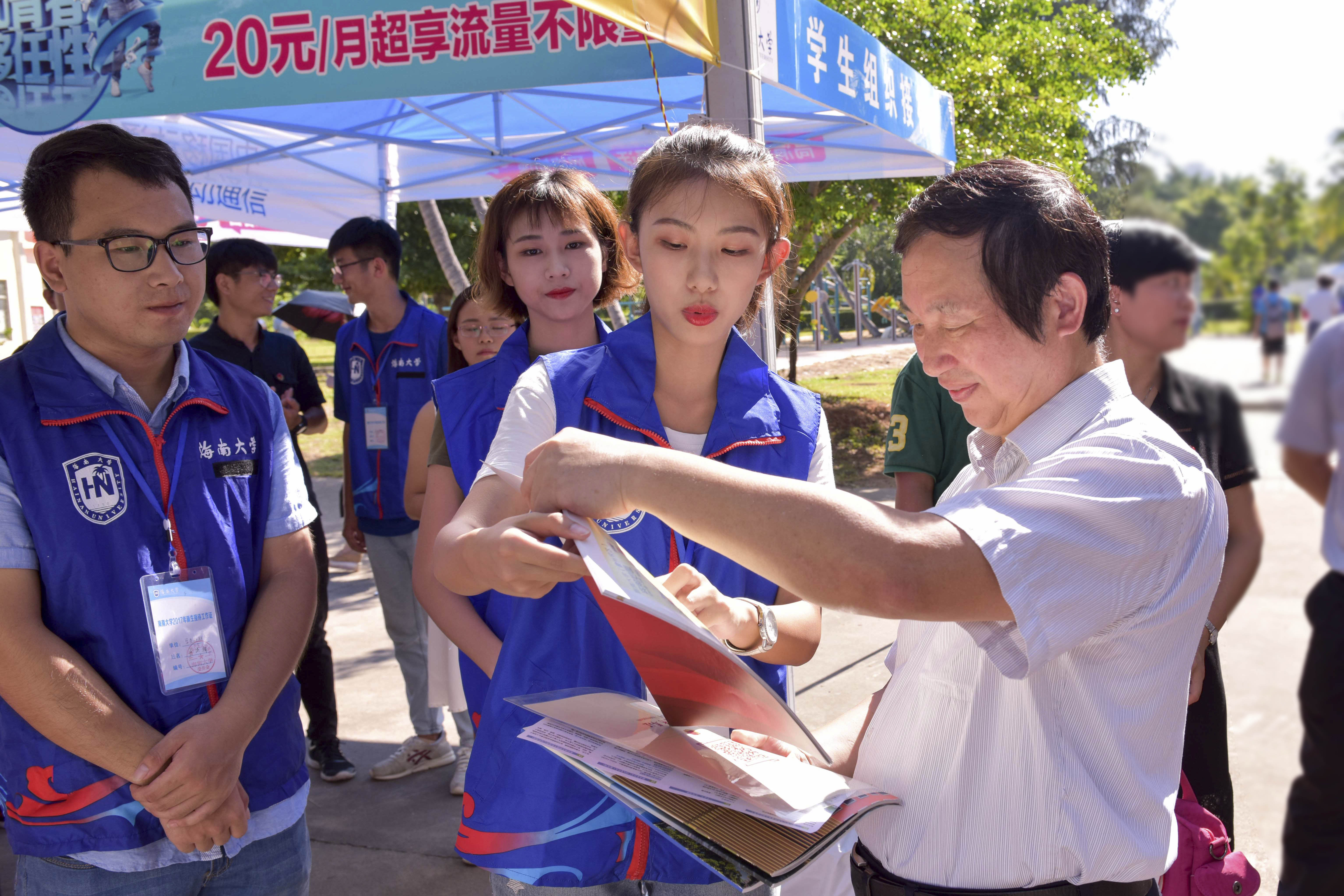 迎新工作是英国威廉希尔公司向新生及其家长展示良好形象的第一扇窗口。英国威廉希尔公司共青团组建了由校团委等六大校级组织学生干部组成的超过2000余名迎新志愿者队伍。他们统一身着蓝色志愿者马甲,佩戴工作证,在火车站、港口与校内迎新点,为乘坐火车、轮渡来校的新生提供热情、周到、全方位的“一站式迎新”服务。学校迎新点专门开通了海甸、城西两校区通勤车接送新生及其家长,仅开学报到第一天,通勤车服务人次已达1236人次。车辆上安排有“校园形象大使”担任新生讲解员,为新生及家长讲解学校历史沿革、校园文化、学生组织建设等方面的情况,帮助新生提前了解学校概况,致力于沟通学校与新生、家长之间的桥梁。