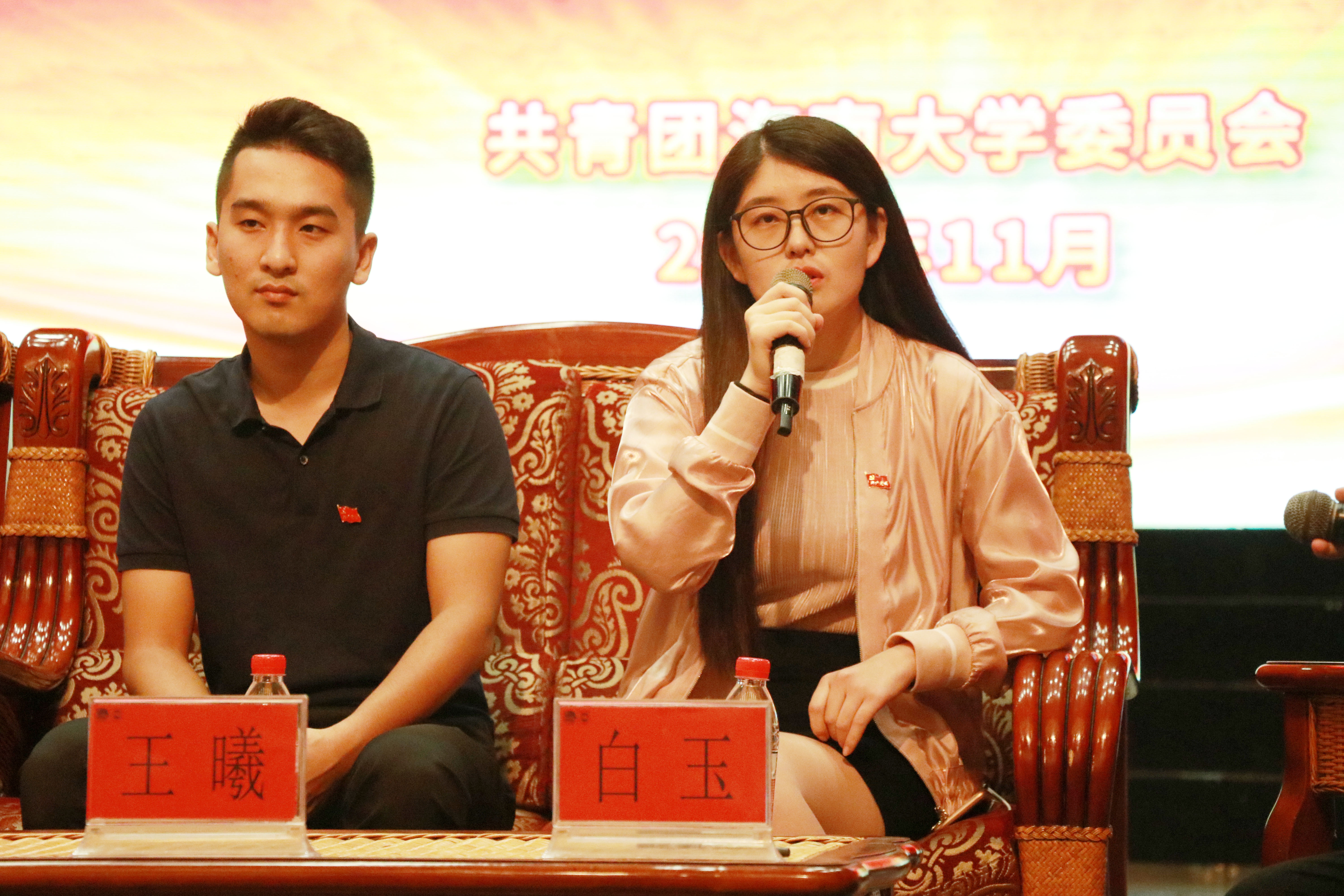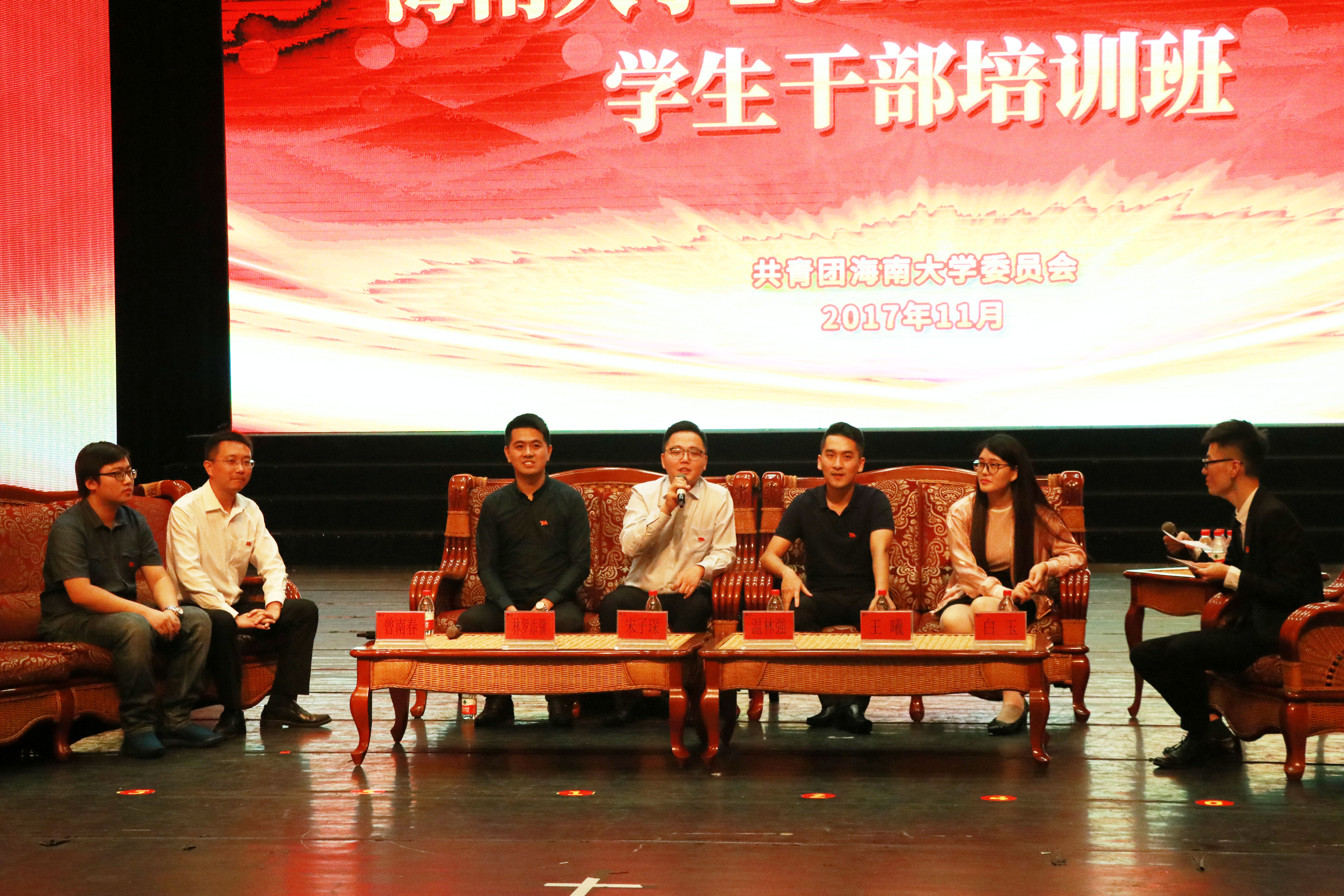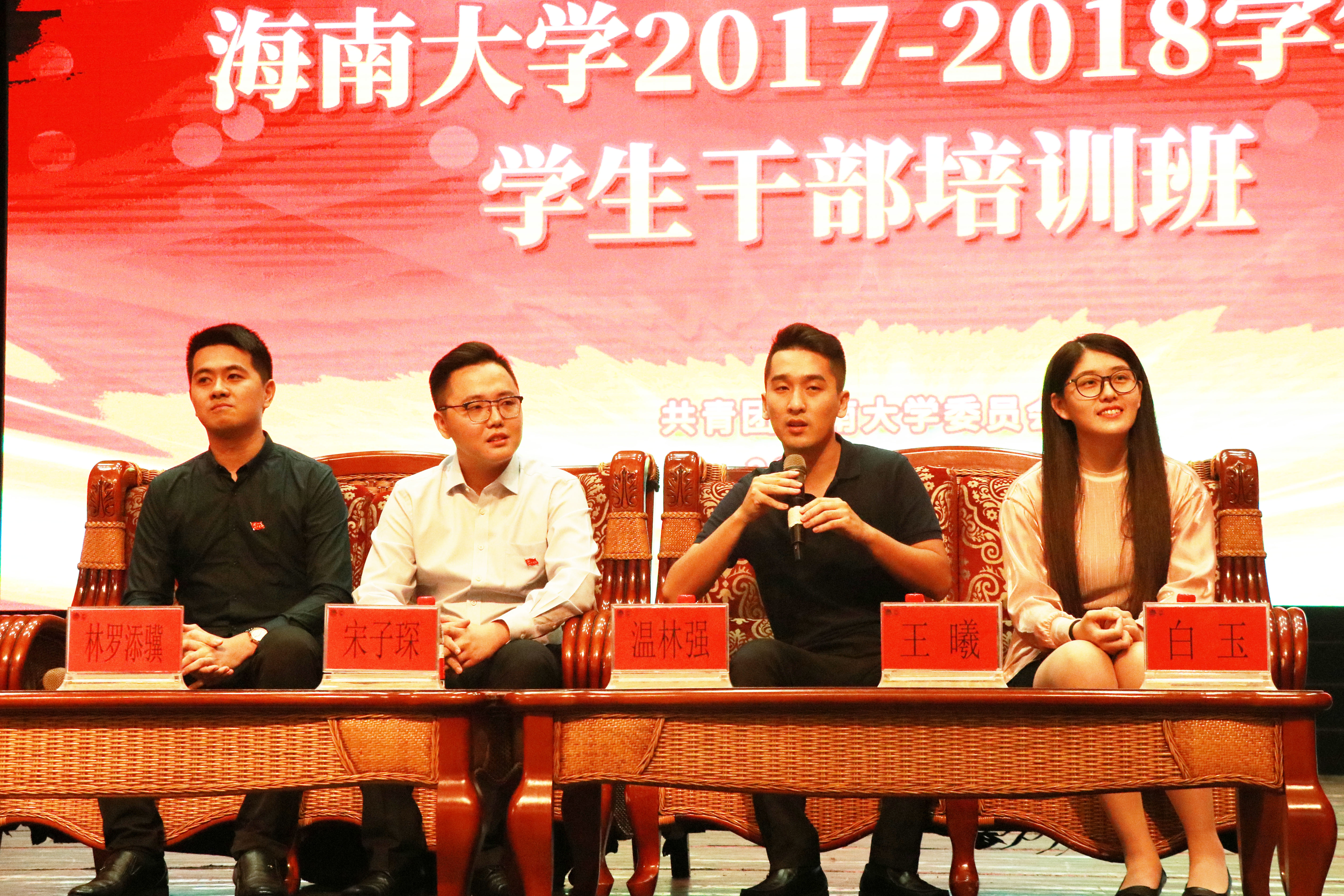 11月4日下午,英国威廉希尔公司2017-2018学年度学生干部培训班座谈会在思源礼堂顺利举行,本场座谈会邀请已毕业的优秀团学骨干白玉、王曦、温林强、宋子琛、林罗添骥、曾南春与近千名学生干部分享成长经历。会议由校团委学生副书记马向阳主持。