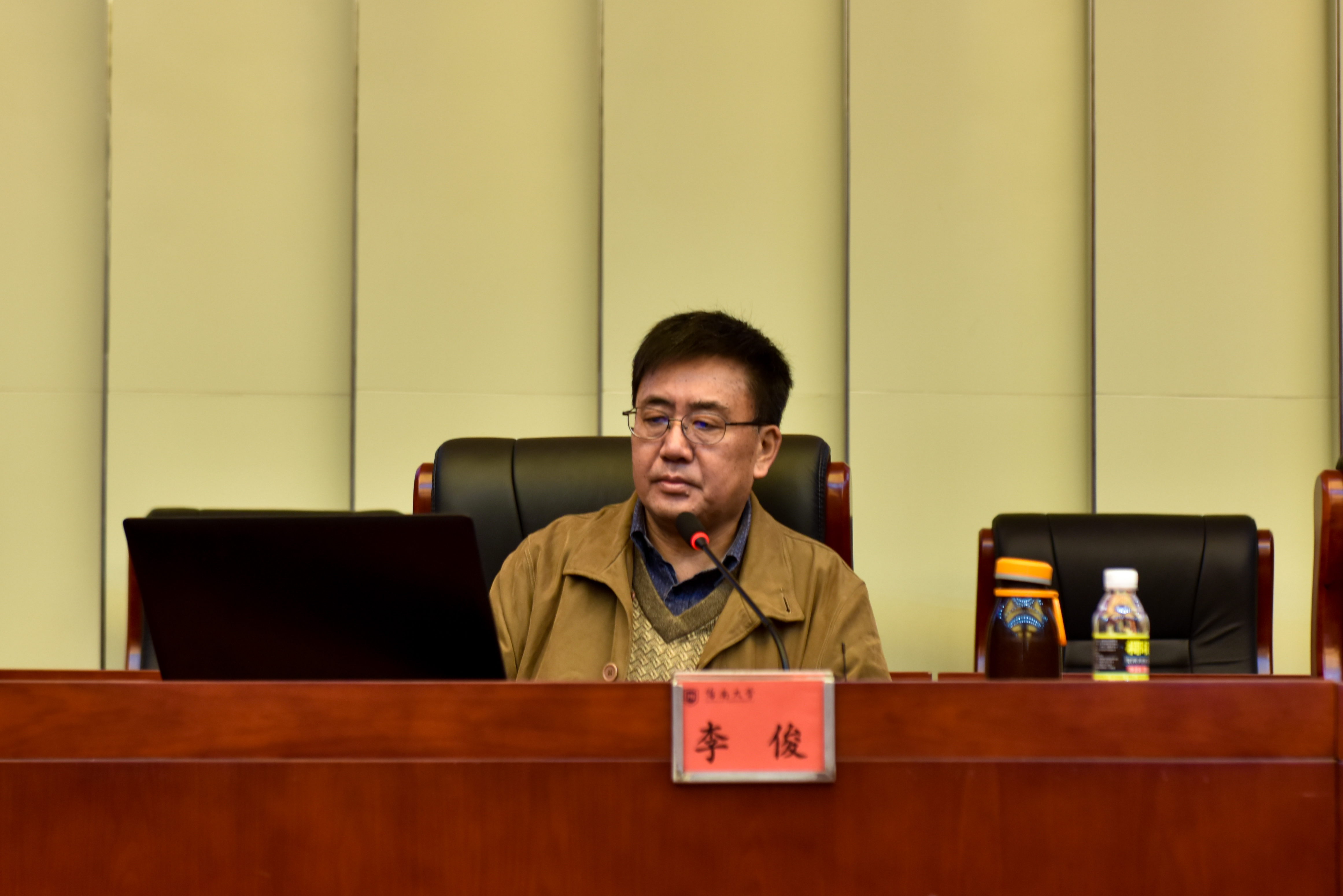 李俊教授从大会的主题、十大历史性成就、两个重大判断、一个使命与四个伟大、一个重要思想等几个方面进行解读,重点分析了“中国梦”、“两个一百年”奋斗目标、“五位一体”总体布局、“四个全面”战略布局、五大发展理念、一带一路、“双一流”等104个关键词。他的讲解深入浅出,既有理论高度又贴近现实,既形象生动又引入深思,给在场的师生上了一堂非常生动的思想政治理论课。在场的师生深受启发,纷纷表示将把党的十九大精神贯彻落实到日常学习和工作中,确保学习宣传贯彻党的十九大精神取得实实在在的成效。