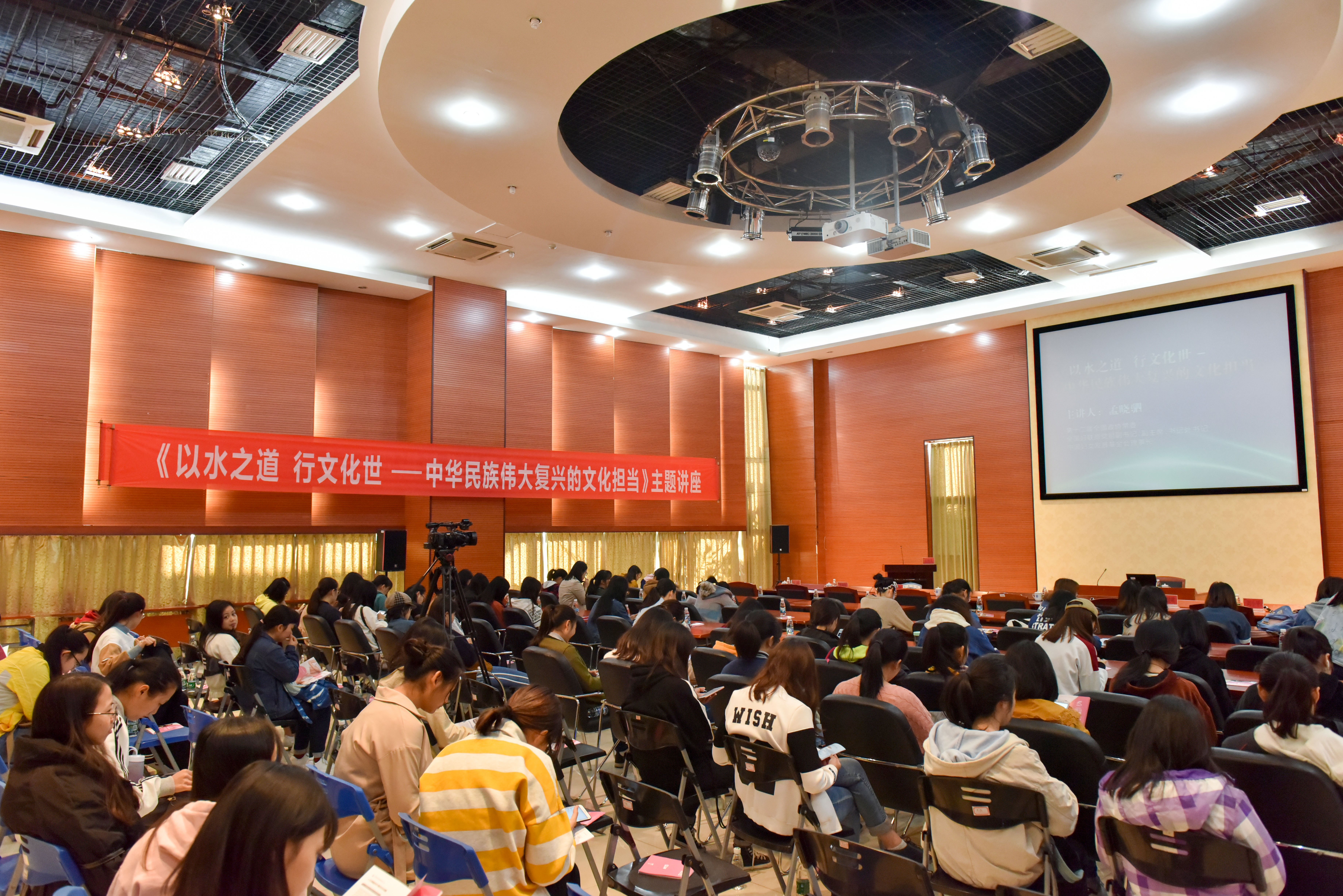 12月19日,第十二届全国政协常委、全国妇联原党组副书记、副主席、书记处书记、中国妇女发展基金会理事长孟晓驷应邀在我校思源学堂多功能报告厅举行“以水之道,行文化世——中华民族伟大复兴的文化担当”专题讲座,国家体育总局、中国老年人体育协会副主席曲志东、中国妇女发展基金会副秘书长张健珉、全国妇联中国婚姻家庭研究会项目办公室副主任刘小平、中国妇女发展基金会合作发展副主任吴琼与一百位同学共同出席此次活动。