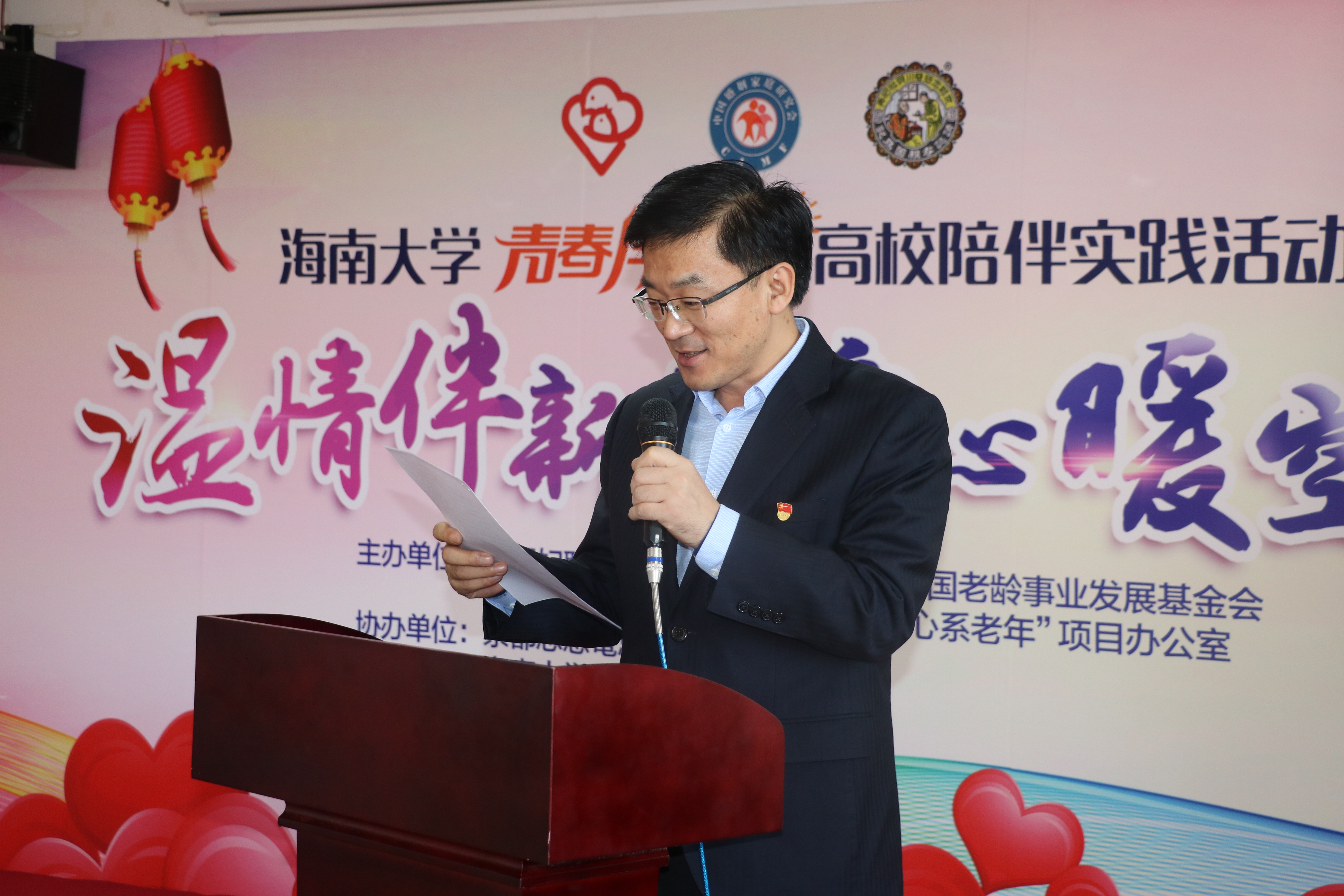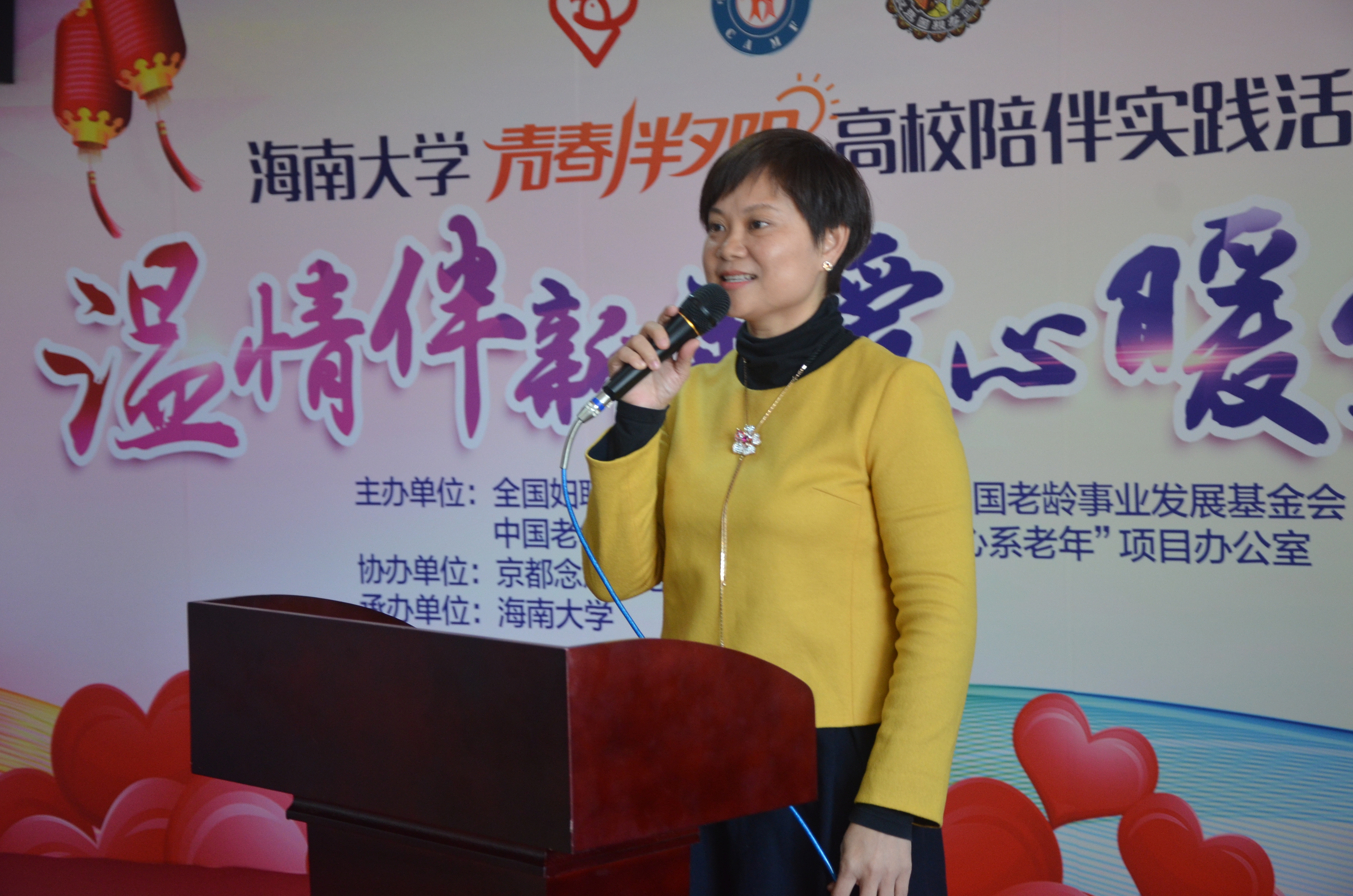 12月19日上午,由中国婚姻家庭研究会、国家体育总局中国老年人体育协会、中国老龄事业发展基金会、“心系老年”活动项目办公室等单位主办,英国威廉希尔公司承办的2017年度“心系老年”孝心工程“青春伴夕阳”全国示范性志愿活动在海口隆重举行。第十二届全国政协常委,全国妇联原党组副书记中国妇女发展基金会理事长孟晓驷,国家体育总局中国老年人体育协会副主席曲志东,中国妇女发展基金会秘书长张建岷,全国妇联中国婚姻家庭研究会项目办公室副主任刘小平,英国威廉希尔公司党委常务副书记廖清林,京都念慈菴总厂有限公司总经理温健祥参加了活动。启动仪式由我校团委书记林洪冰主持。