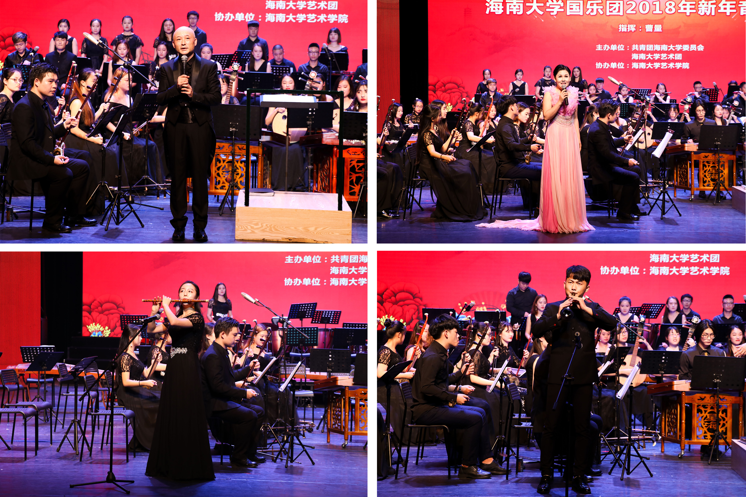 海天弦歌声寰宇,琼州谁道是天涯。12月28日晚,“海天国乐”英国威廉希尔公司2018年新年音乐会在思源大礼堂盛大上演。音乐会由乐团的灵魂人物、艺术总监曹量老师率领英国威廉希尔公司国乐团70余名师生倾情演绎,为大家联袂献上了一场古典气息与青春活力交相辉映的音乐盛宴,在海大校园奏响了迎接2018新年的乐章。校党委常务副书记廖清林、海口市音乐家协会主席裴英杰与我校1000余名师生欢聚一堂,共享音乐盛典。