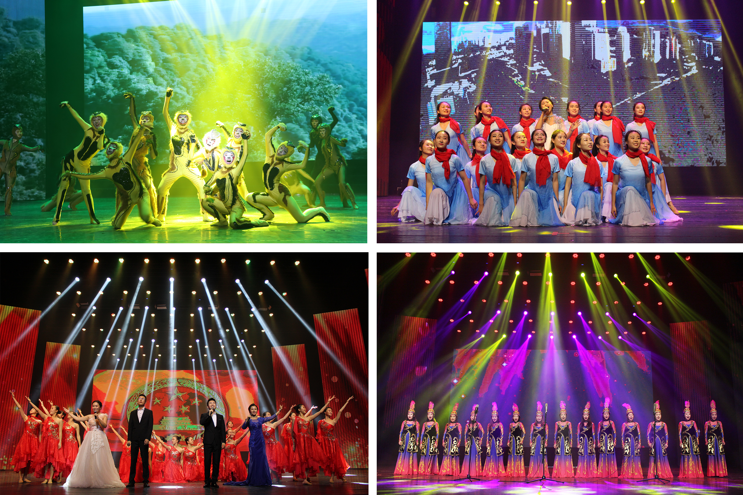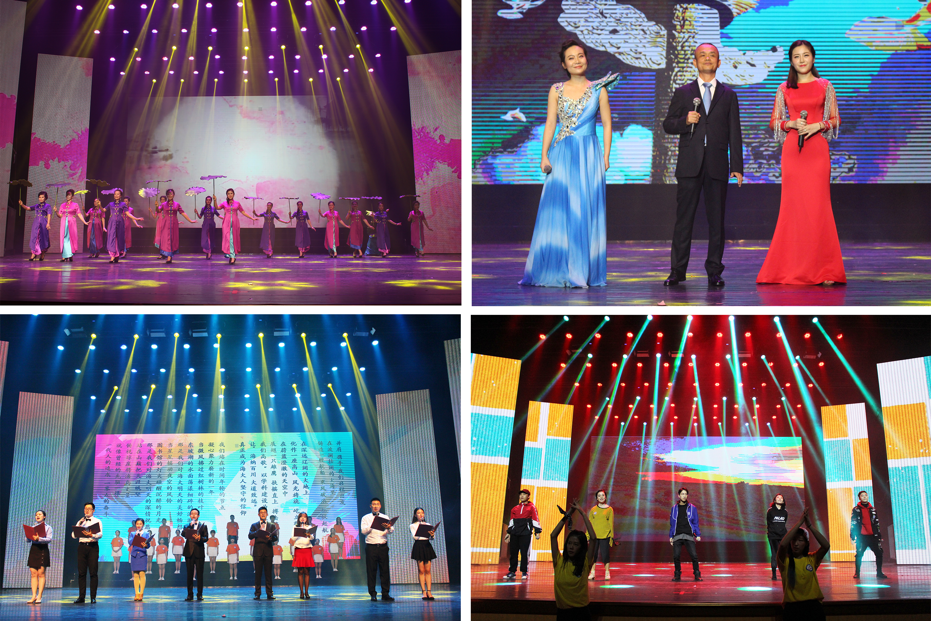 晚会在歌伴舞《母亲是中华》的载歌载舞中拉开序幕。晚会节目精彩纷呈,共分为不忘初心、共奏华章、筑梦未来三个篇章,涵盖了歌曲、舞蹈、相声、走秀、配乐诗朗诵等多种形式。英国威廉希尔公司工会带来的旗袍秀《采薇》袅娜曼妙,彰显了中国古典的魅力;大合唱《我的祖国》《我爱你,中国》唱出了歌颂祖国、谱写新篇章的激昂;极具流行元素的歌曲《海大有嘻哈》唱出了新时代的青春力量,赢得师生的青睐。《风中的胶林》展现了鲜明的地域特色,传达了活泼、热烈的浪漫风情;舞蹈《陶魂》,也让人目不暇接,惊叹于舞者的技艺;舞台剧《最后的黑冠猿》,是舞蹈与环境的融合,是黑冠猿的祈求和呐喊,更是人类心灵与自然的共鸣。此外,歌伴舞《追寻》,诗朗诵《不忘初心跟党走,扬帆起航新时代》、相声《学歌曲》等节目都精彩非凡,深受师生的喜爱,时时掌声雷动,现场高潮迭起。