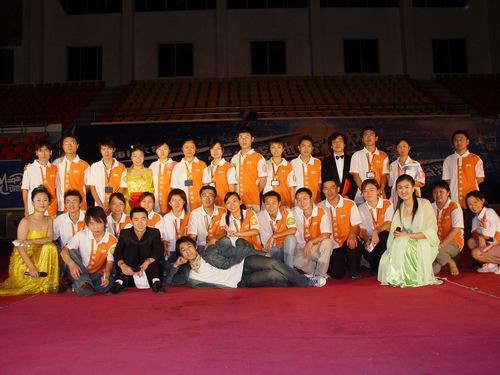 工作人员与主持人合影