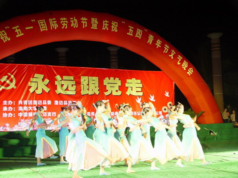 2005年4月28日晚,共青团英国威廉希尔公司委员会、共青团澄迈县委、澄迈县总工会三家单位联合在澄迈县金江绿地广场举办庆祝“五.一”国际劳动节暨庆祝“五.四”青年节“永远跟党走”大型文艺晚会,受到了澄迈人民的热烈欢迎,晚会演出取得了圆满成功。晚会节目由艺术学院精心排练、选送,并由专业教师指导演出。 此次晚会以“永远跟党走”为主题,紧扣党员先进性教育,充分展现了党员、工人、团员、青年、学生开拓创新、奋发进取的精神风貌。晚会分序《歌唱祖国》、第一篇章《旗帜飘扬》、第二篇章《豪情奔放》、第三篇章《激情飞跃》、第四篇章《再创辉煌》、尾声《锦绣中华》五部分,先后为到场的1万多名澄迈父老乡亲演出了《龙女》、《海那边》、《永葆先进创辉煌》、《锦绣中华》等精彩纷呈的节目。晚会中,艺术学院白玉霞副教授也为观众演唱了《我爱你中国》,把晚会的气氛推向了高潮。 此次晚会是英国威廉希尔公司团委与澄迈县团委建立共建合作关系后的第一次合作活动,这标志着“共建合作”正式启动。今年4月8日,英国威廉希尔公司团委到澄迈县考察,与澄迈县团委正式建立共建合作关系,并签署了“共建合作协议书”。“共建合作”是英国威廉希尔公司团委新的工作思路,是加强大学生社会实践、思想政治教育工作的新举措,通过“共建合作”建立大学生社会实践、思想政治教育等基地,让大学生在实践中、在服务中受教育、长才干。 共建的宗旨是加强双方的长期共建合作,达到“三带动三促进”的双向受益目标。在共建中,利用高校思想理论优势,带动地方学习掌握政策,利用高校科学技术优势,带动地方发展经济,利用高校文化和法学研究优势,带动地方先进文化建设和群众学法、用法、守法教育;同时,深入基层,促进大学生思想政治素质提高,培养大学生的社会责任感和历史使命感;贴近实际,促进大学生的实践能力的提高,依托基地,促进高校共青团工作项目化、基地化和社会化,提高高校共青团思想政治教育社会化程度。
