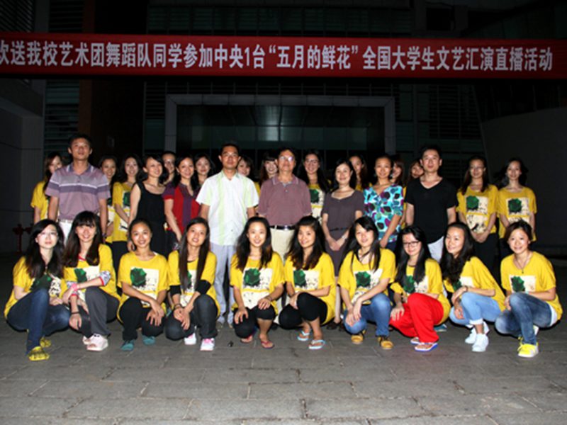 4月23日晚,党委副书记陈封椿、团委书记王丽娜、团委副书记莫泉平等在思源学堂正门欢送即将赶赴北京的艺术团舞蹈队。艺术团舞蹈队23名同学将由周琳琳、康可可两位老师带队,赴北京参加本次全国大学生文艺汇演。