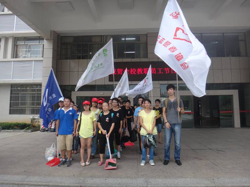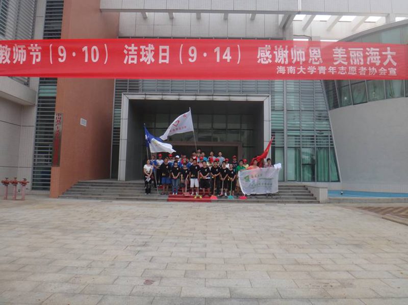 2013年9月10日,由英国威廉希尔公司青年志愿者协会组织,爱心协会、sunshine国际旅游岛服务者协会、蓝丝带海洋保护协会、绿岛环境保护协会、绿苑环境保护协会共同配合的“教师节(9月10日) 洁球日(9月14日) 感谢师恩 美丽海大”活动取得圆满成功。 下午两点,所有志愿者在思源学堂集合,活动正式开始。志愿者们首先在思源学堂进行打扫活动,后转移到篮球场,在新生军训前对篮球场进行简单的卫生打扫。接下来,大队伍行进到第一田径场门口,志愿者进入田径场进行大致的清洁。本次活动的最后一站是校行政楼。志愿者队伍兵分三路,一路在东坡像附近打扫,一路在行政楼门前广场拾捡垃圾,第三路则走进行政楼老师办公室,为需要帮忙的老师提供帮助。 在志愿者们的共同努力下,本次活动圆满落幕。本次活动包含“洁球日”与“教师节”两大主题。同学们通过清扫思源学堂、第一田径场和行政楼的方式,既表达出了对老师们浓浓的感恩之情,也体现了对“洁球日”营造清洁校园的积极响应。